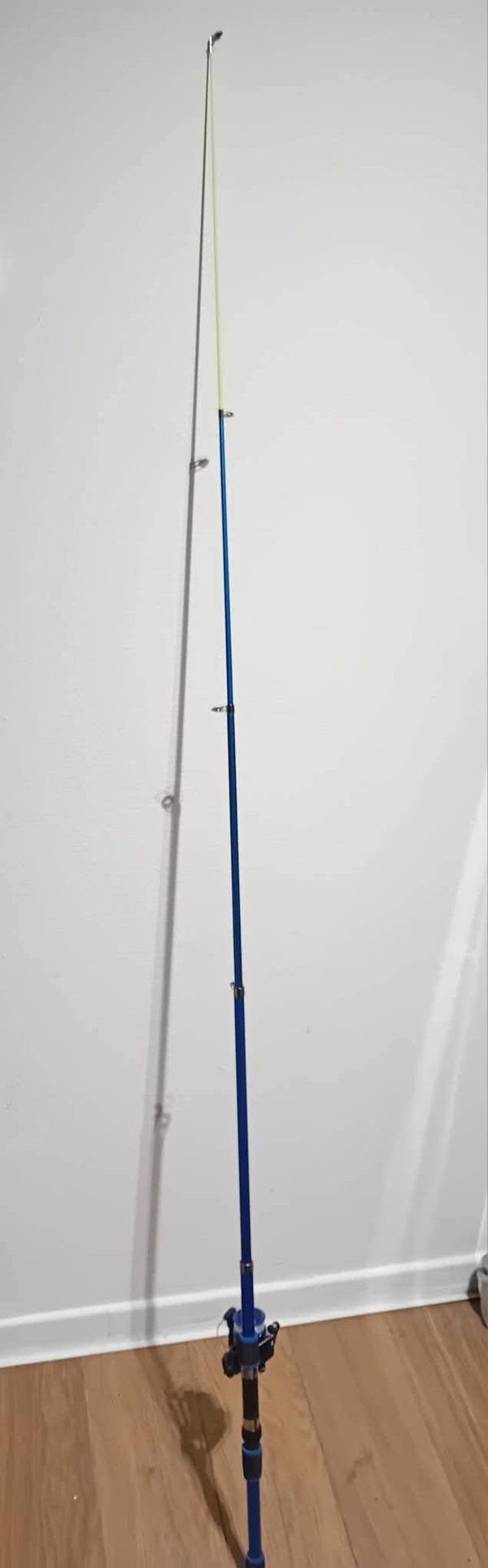 inbegrepen hengel, molen,opbergzak, setje kunstaas